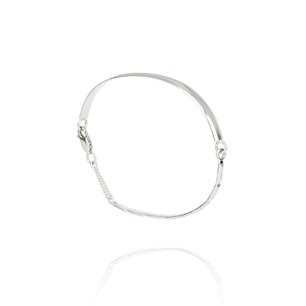 This piece presents a rich array of textures, from the outside satin finish to the inside mirror polish, from the facets of the baguette like metal pieces to the fine curb chain. This sleek bracelet will work with any outfit and will quickly become one of your favourites! Wear it single and minimal or stack it with your watch, other metal bangles or some colored bracelets for a more boho and casual look. It will also complement nicely any of our rings, necklaces or earrings.