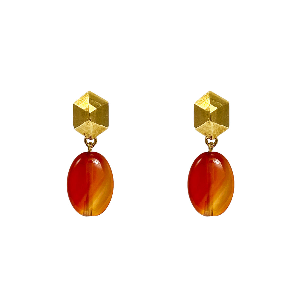 The textured and faceted geometric gold hexagonal beautifully catch the light, and nicely contrast with the smooth carnelian ovals.