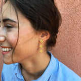 The gold plated sterling silver pieces are plated with 3 microns of 18 carat yellow gold. This surface treatment will fade over time because of contact with clothes, hard surfaces, sweat, perfume, hairspray, air pollution and others.