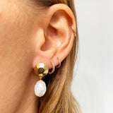 This beautiful pair of earrings presents a modern take on a traditional pair of pearl earrings. It features our signature round Merci pattern and a beautiful set of baroque pearls.