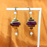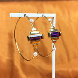 Stunning Deco inspired Scala Hoops set with bright purple baguette amethyst and pearls.