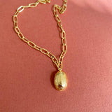 Its weight gives it a really beautiful presence, and this drop of gold resting on your chest will feel comforting, protecting and warm.