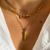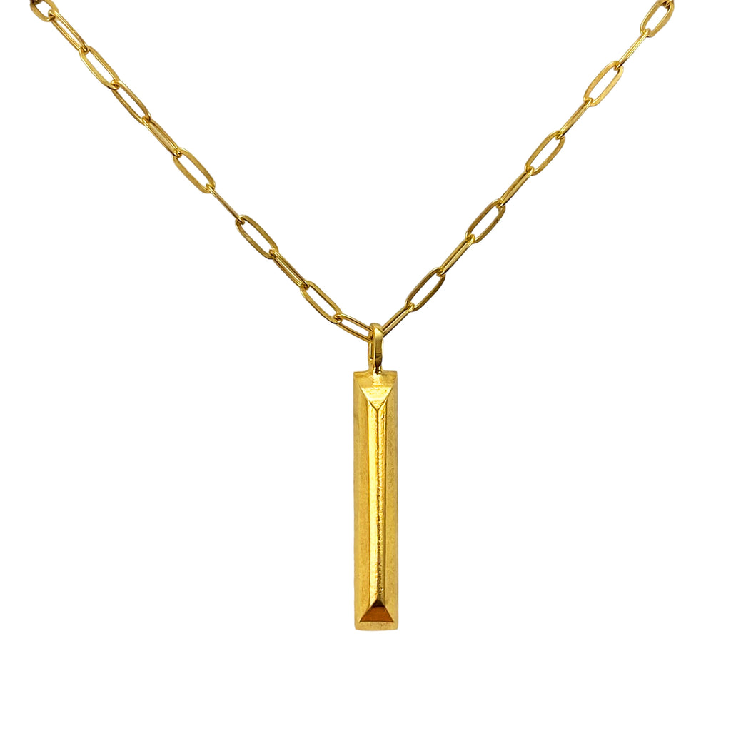 Its weight gives it a really beautiful presence, and this small bar of gold resting on your chest will feel comforting, protecting and warm.