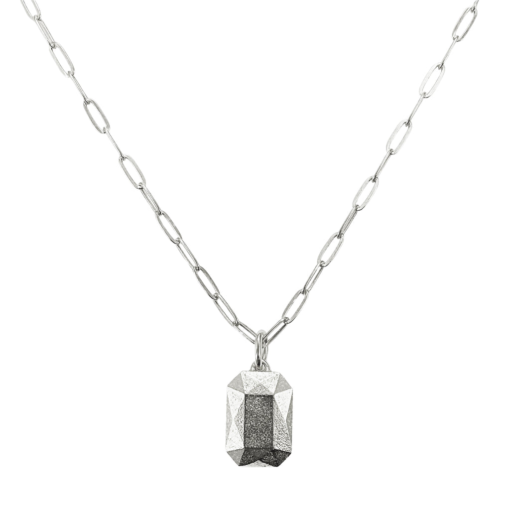 Simple, beautifully textured and tactile, its facets nicely catch the light, and its length makes it the perfect pendant to layer with other chains and necklaces.