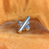 Geometric and sculptural ring in silver. The facets beautifully catch the light.