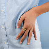 Materials: 18 carat yellow gold plated sterling silver, 5 mm Ethiopian opal cabochon