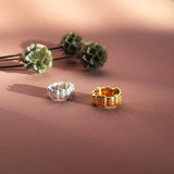 The Luci ring is actually the spark you need to brighten any of your looks. The many facets of this piece subtly reflect the light and attract the eye. The inside of the ring is mirror polished and nicely contrasts with the outside texture.