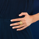 For a modern look, wear this edgy, textured and architectural ring with a minimal outfit. Or go even bolder and pair it with a pair of statement earrings.